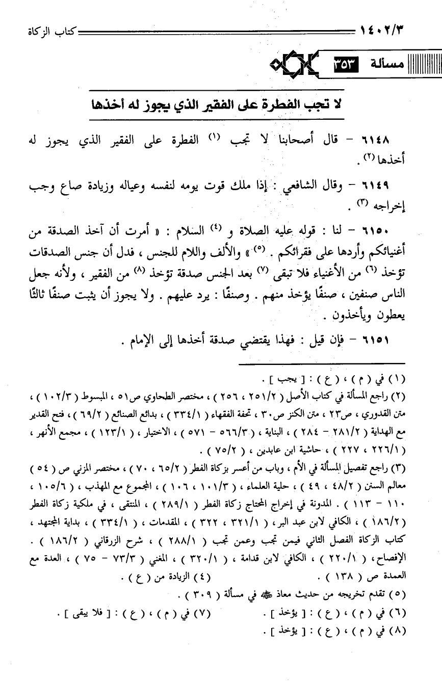 6148 - قال أصحابنا لا تجب الفطرة على الفقير الذي يجوز له أخذها.