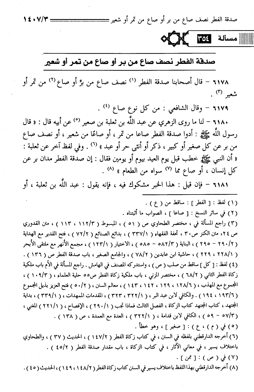 6178 - قال أصحابنا صدقة الفطر نصف صاع من بر أو صاع من تمر أو شعير.