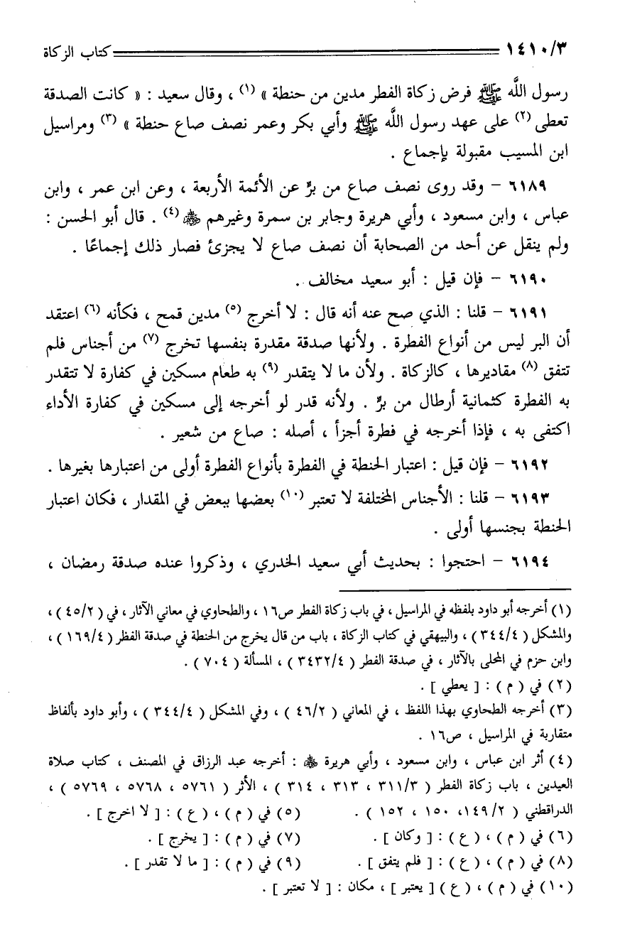 6192 - فإن قيل: اعتبار الحنطة في الفطرة بأنواع الفطرة أولى من اعتبارها بغيرها.