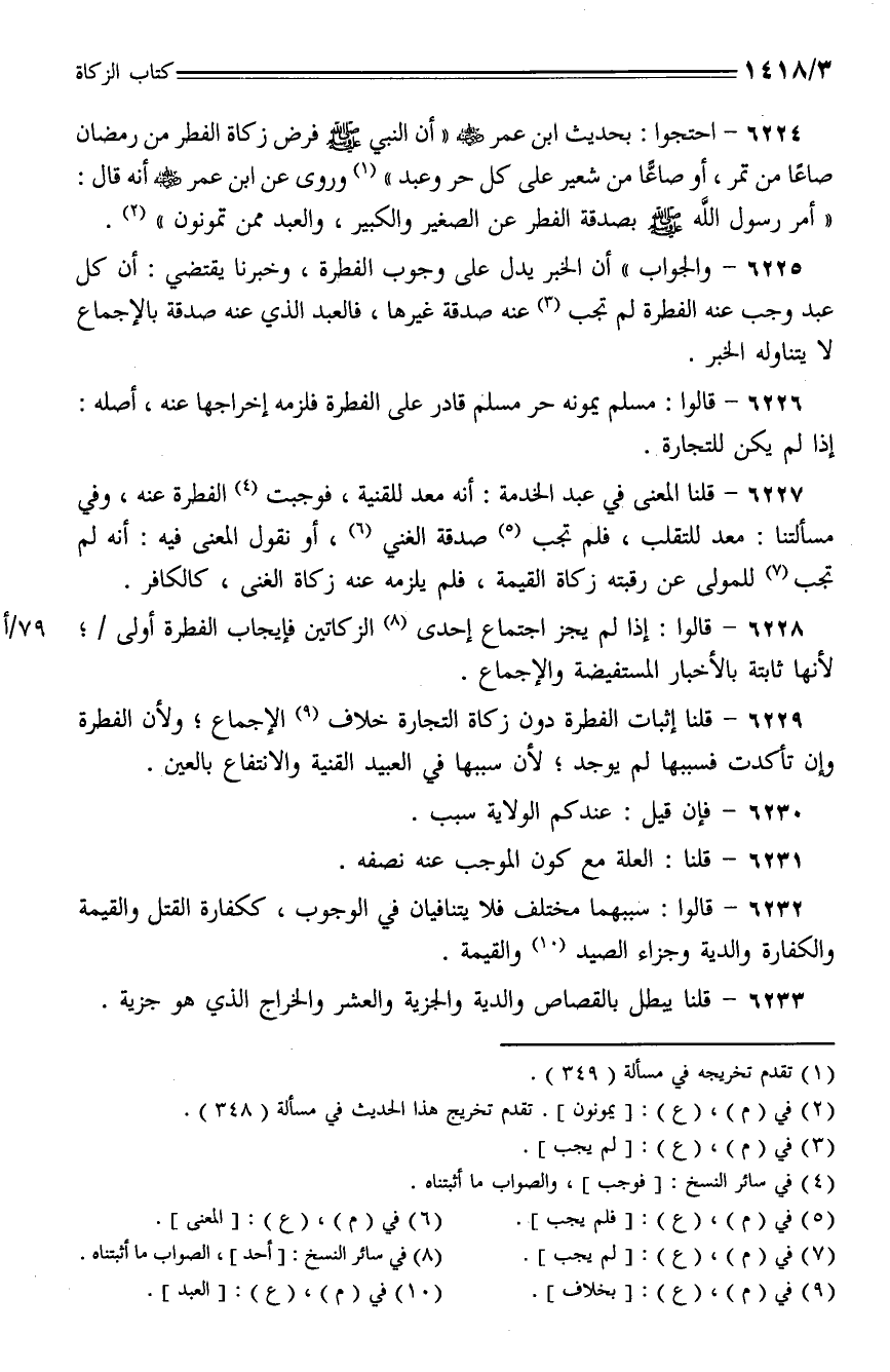 6225 - والجواب) أن الخبر يدل على وجوب الفطرة, وخبرنا يقتضي: أن كل عبد وجب عنه الفطرة لم تجب عنه صدقة غيرها, فالعبد الذي عنه صدقة بالإجماع لا يتناوله الخبر.