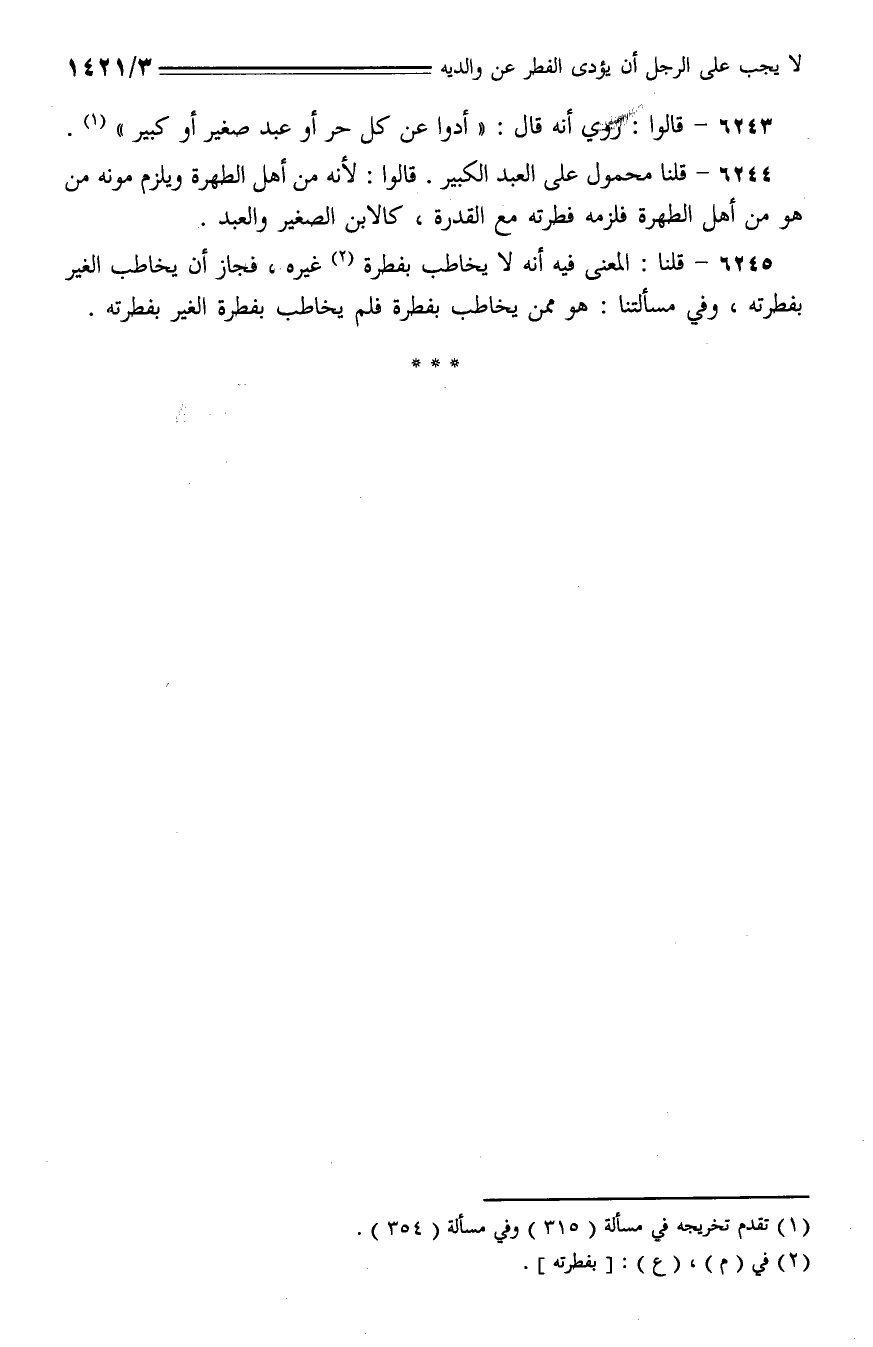 6245 - قلنا: المعنى فيه أنه لا يخاطب بفطرة غيره، فجاز أن يخاطب الغير بفطرته, وفي مسألتنا: هو ممن يخاطب بفطرة فلم يخاطب الغير بفطرته.