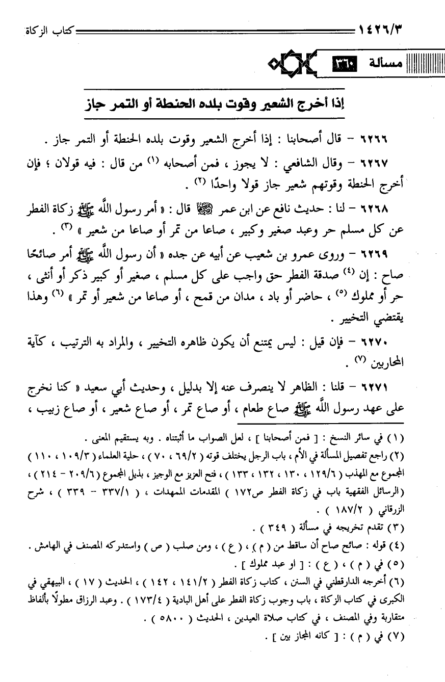 6267 - وقال الشافعي: لا يجوز, فمن أصحابه من قال: فيه قولان؛ فإن أخرج الحنطة وقوتهم شعير جاز قولا واحدا.