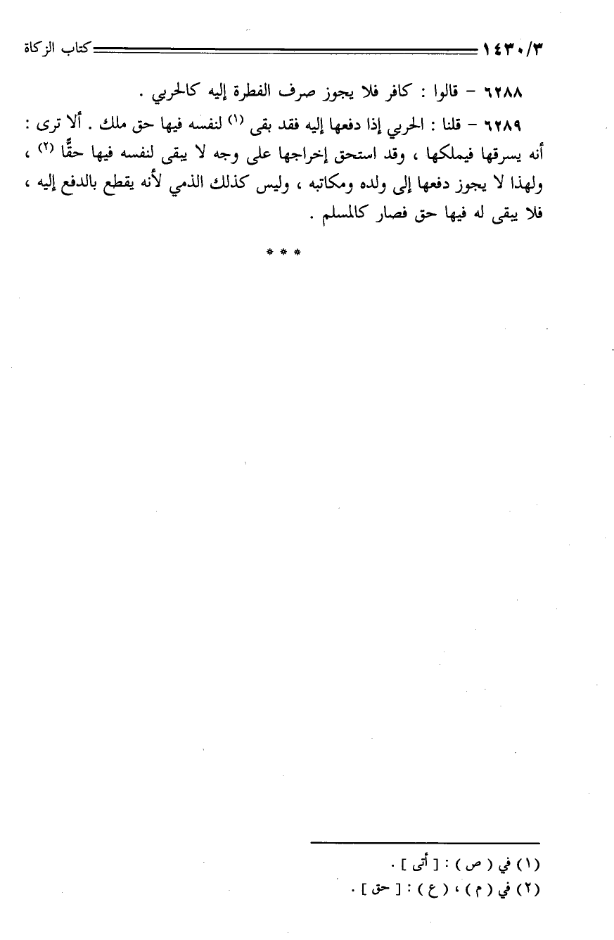 6288 - قالوا: كافر فلا يجوز صرف الفطرة إليه كالحربي.