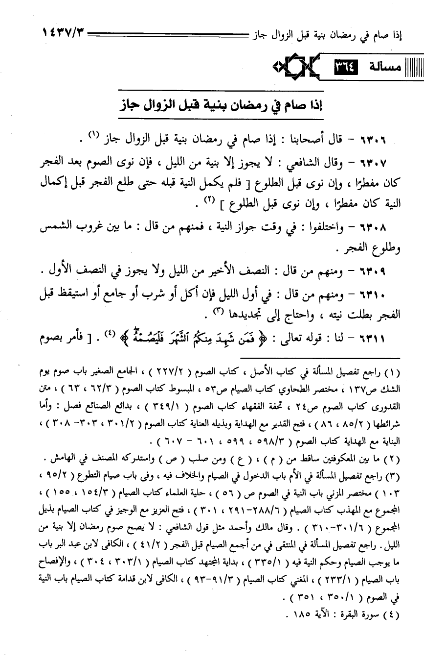 6306 - قال أصحابنا: إذا صام في رمضان بنية قبل الزوال جاز.