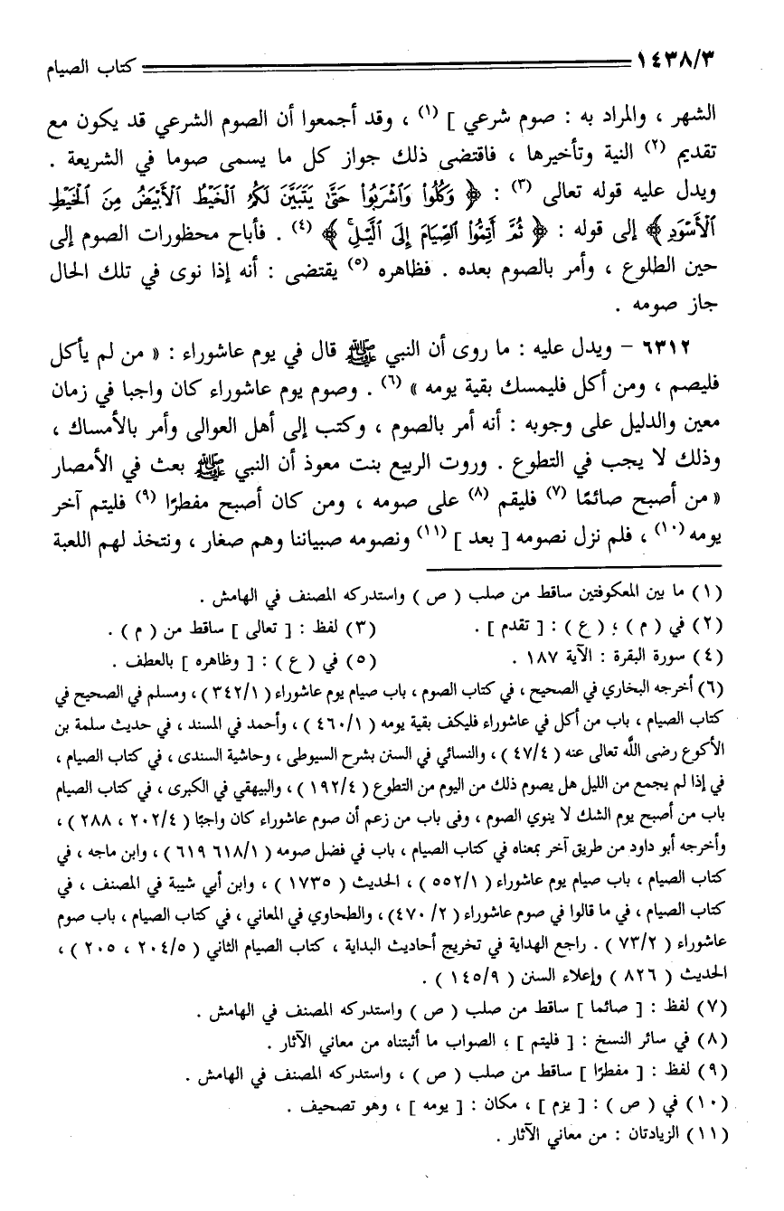 6312 - ويدل عليه: ما روي أن النبي - صلى الله عليه وسلم - قال في يوم عاشوراء: (من لم يأكل فليصم، ومن أكل فليمسك بقية يومه). وصوم يوم عاشوراء كان واجبا في زمان معين والدليل على وجوبه: أنه أمر بالصوم، وكتب إلى أهل العوالي وأمر بالأمساك، وذلك لا يجب في التطوع. وروت الربيع بنت معوذ أن النبي - صلى الله عليه وسلم - بعث في الأمصار (من أصبح صائما فليقم على صومه، ومن كان أصبح مفطرا فليتم آخر يومه، فلم نزل نصومه [بعد] ونصومه صبياننا وهم صغار، ونتخذ لهم اللعبة