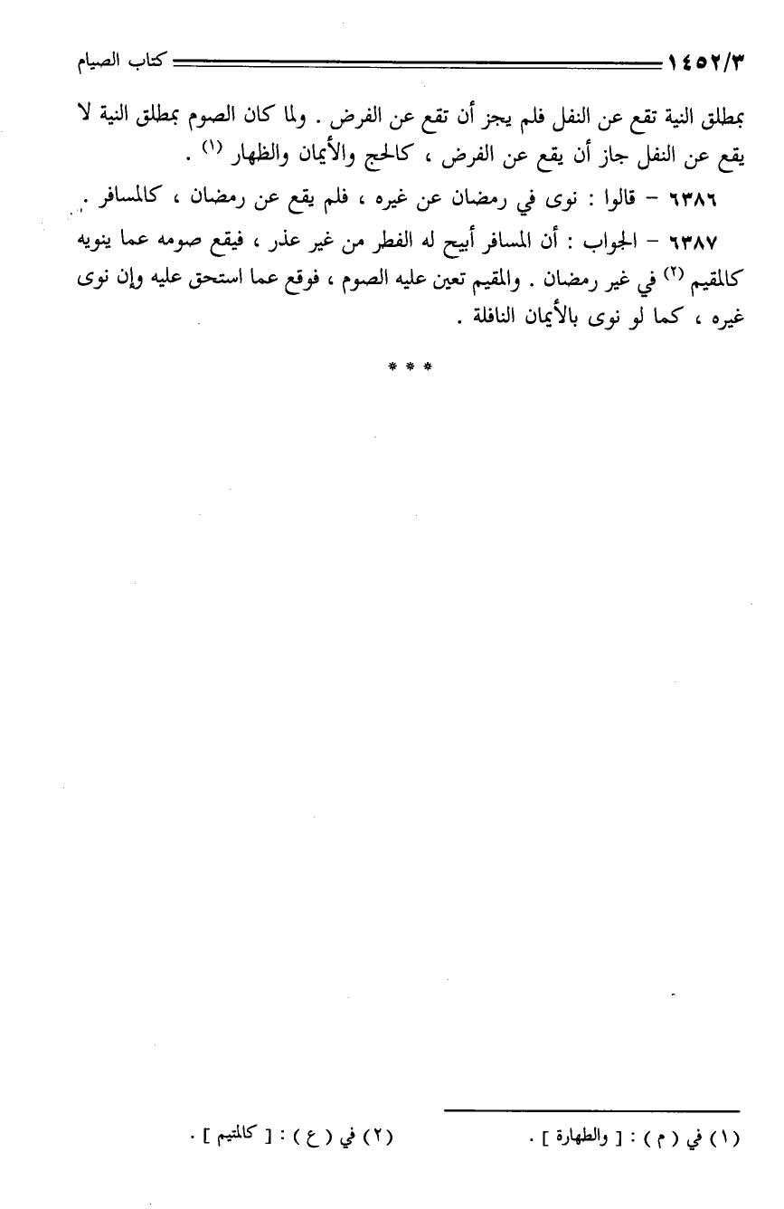 6386 - قالوا: نوى في رمضان عن غيره، فلم يقع عن رمضان، كالمسافر.