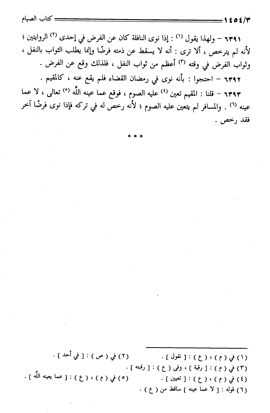 6392 - احتجوا: بأنه نوى في رمضان الفضاء فلم يقع عنه، كالمقيم.