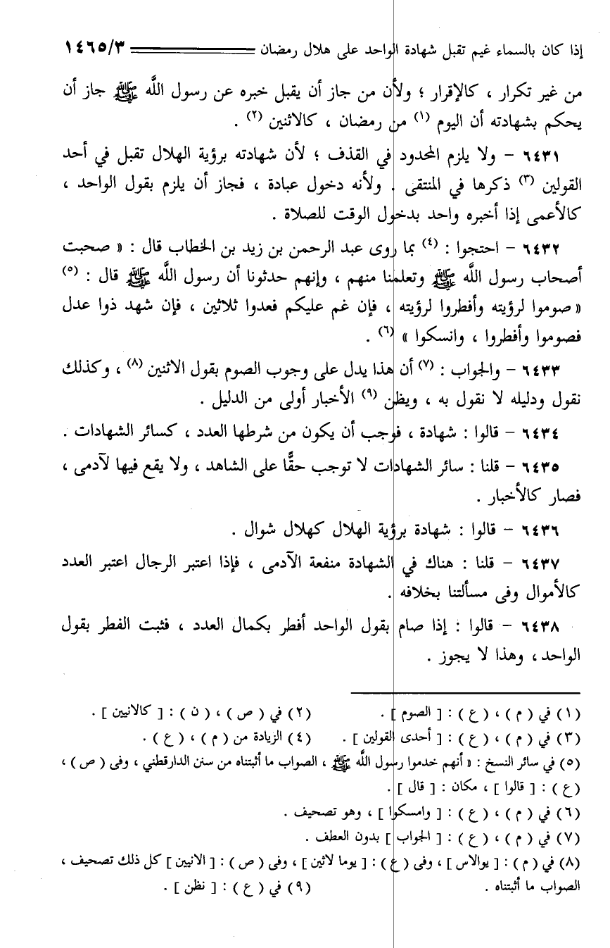 6433 - والجواب: أن هذا يدل على وجوب الصوم بقول الاثنين، وكذلك نقول ودليله لا نقول به، ويظن الأخبار أولى من الدليل.