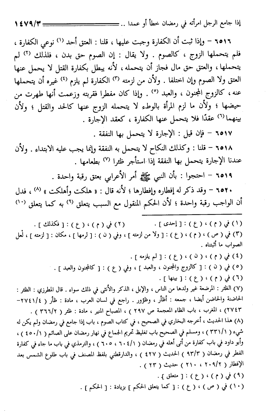6519 - احتجوا: بأن النبي - صلى الله عليه وسلم - أمر الأعرابي بعتق رقبة واحدة.