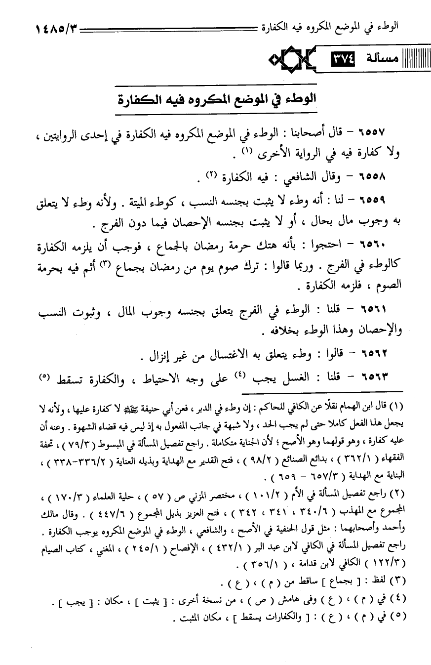 6563 - قلنا: الغسل يجب على وجه الاحتياط، والكفارة تسقط