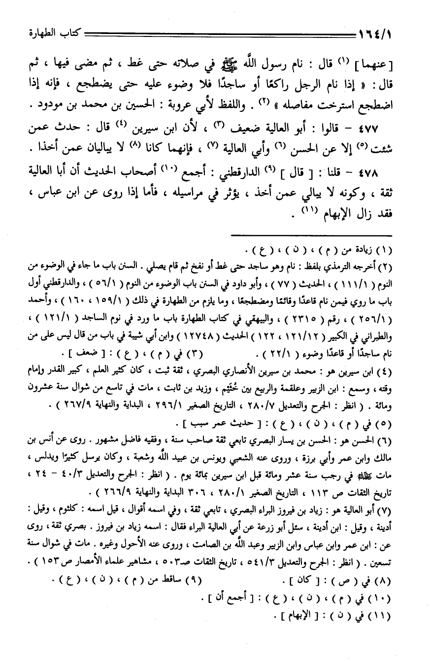 478 - قلنا: قال الدارقطني: أجمع أصحاب الحديث أن أبا العالية ثقة، وكونه لا يبالي عمن أخذ، يؤثر في مراسيله، فأما إذا روى عن ابن عباس، فقد زال الإبهام.