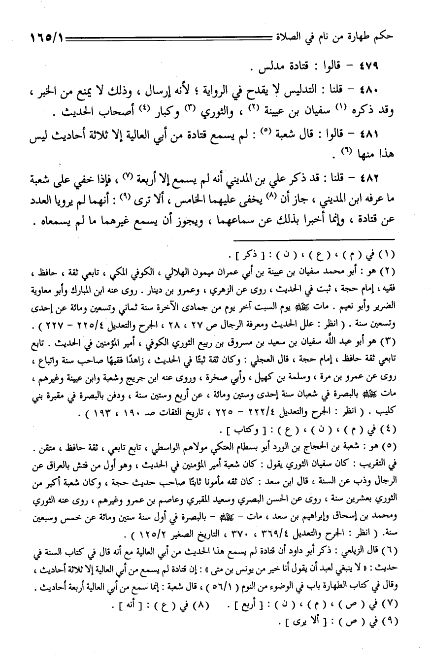 482 - قلنا: قد ذكر علي بن المديني أنه لم يسمع إلا أربعة، فإذا خفي على شعبة ما عرفه ابن المديني، جاز أن يخفى عليهما الخامس، ألا ترى: أنهما لم يرويا العدد عن قتادة، وإنما أخبرا بذلك عن سماعهما، ويجوز أن يسمع غيرهما ما لم يسمعاه.