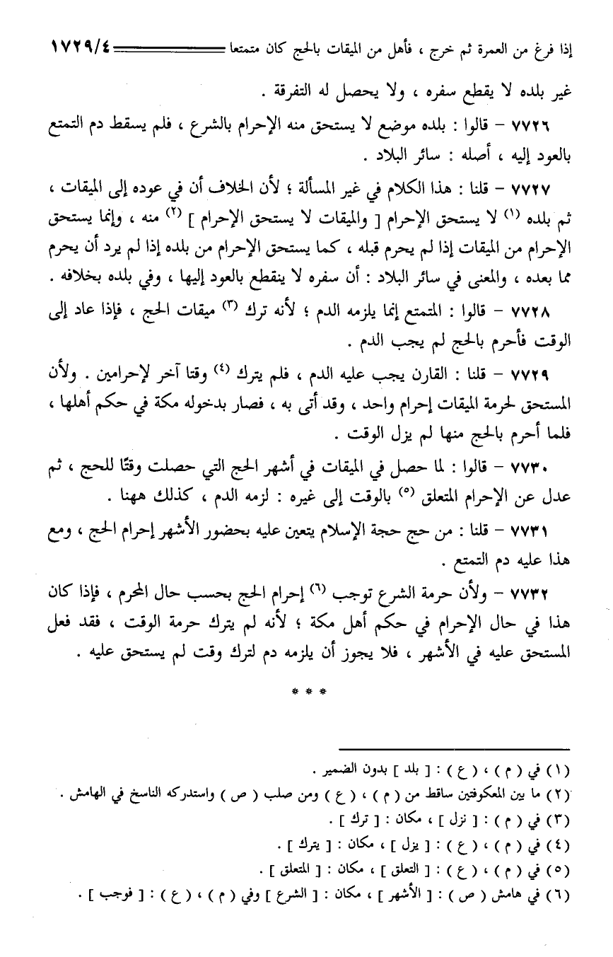 7728 - قالوا: المتمتع إنما يلزمه الدم؛ لأنه ترك ميقات الحج، فإذا عاد إلى الوقت فأحرم بالحج لم يجب الدم.
