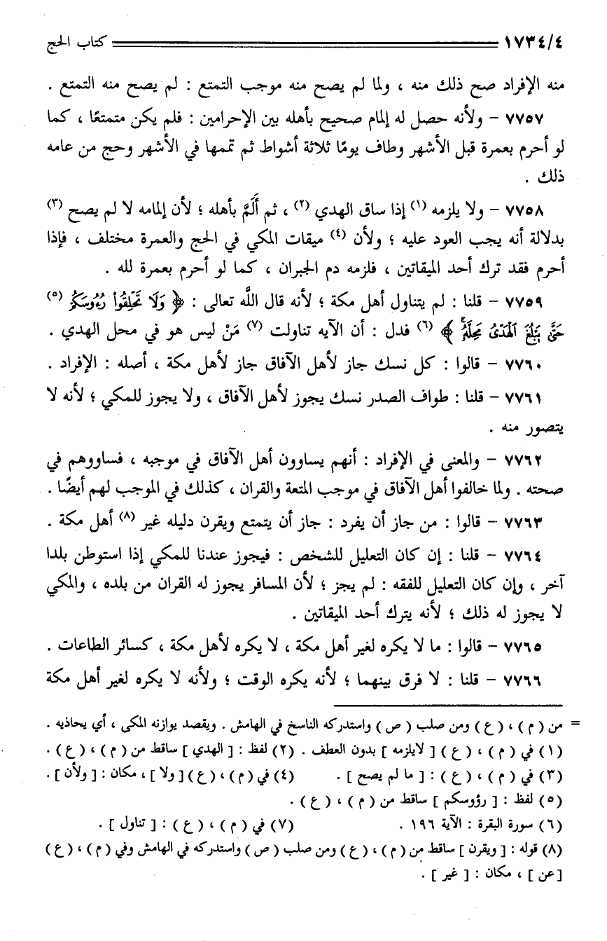 7760 - قالوا: كل نسك جاز لأهل الآفاق جاز لأهل مكة، أصله: الإفراد.