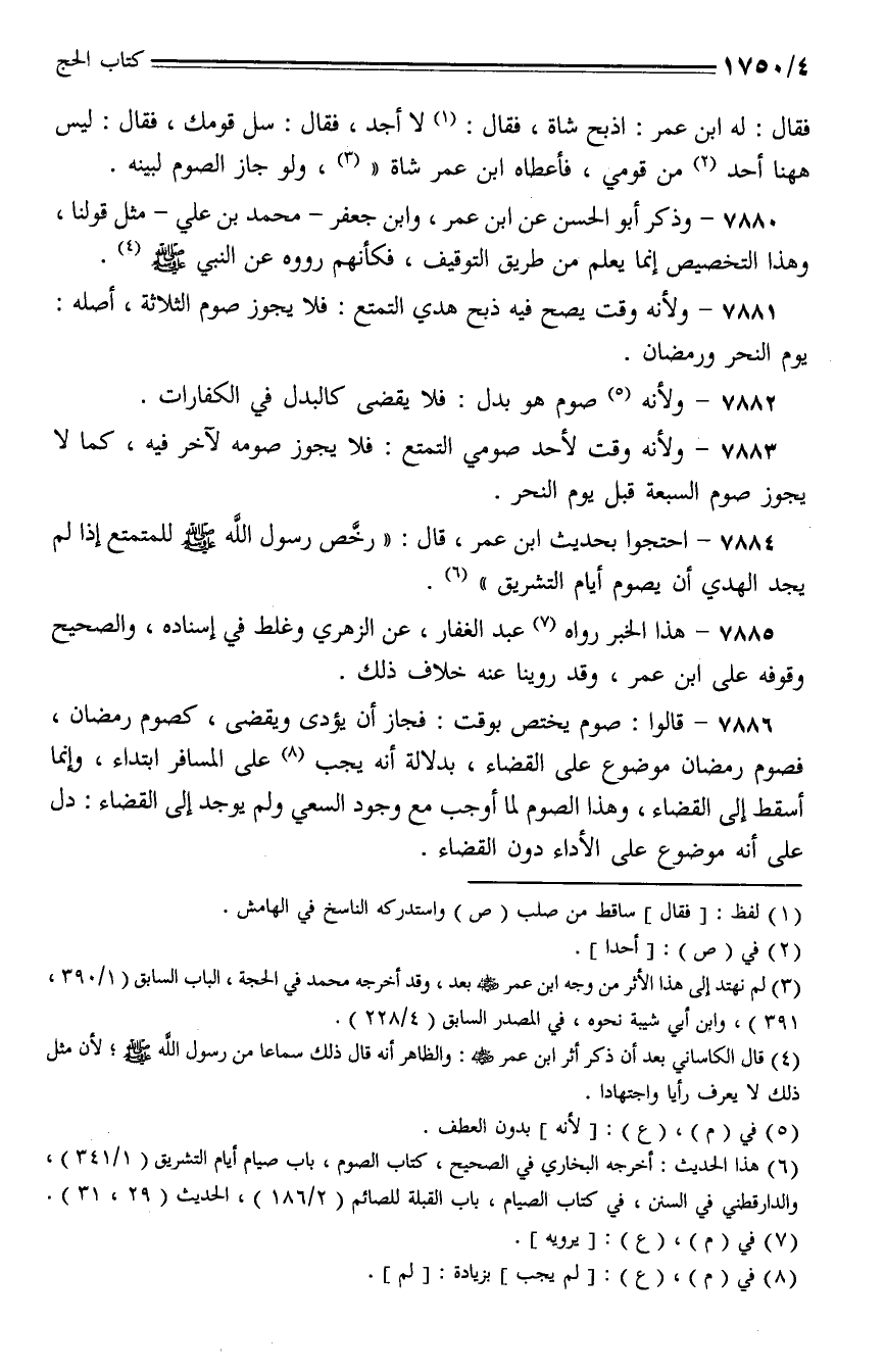 7884 - احتجوا بحديث ابن عمر، قال: (رخص رسول الله - صلى الله عليه وسلم - للمتمتع إذا لم يجد الهدي أن يصوم أيام التشريق).