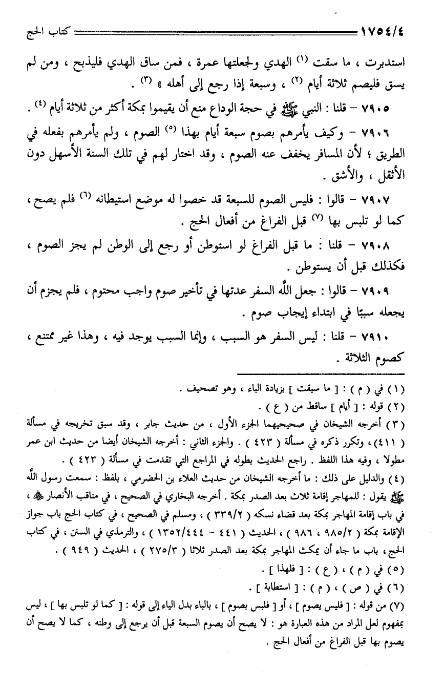 7910 - قلنا: ليس السفر هو السبب، وإنما السبب يوجد فيه، وهذا غير ممتنع، كصوم الثلاثة.