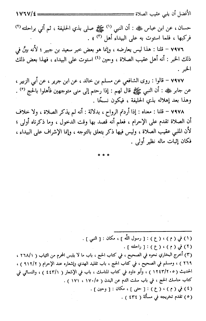 7976 - قلنا: هذا ليس يعارضه، وإنما هو بعض خبر سعيد بن جبير؛ لأنه بين في ذلك الخبر: أنه أهل عقيب الصلاة، وحين استوت على البيداء، فهذا بعض ذلك الخبر.