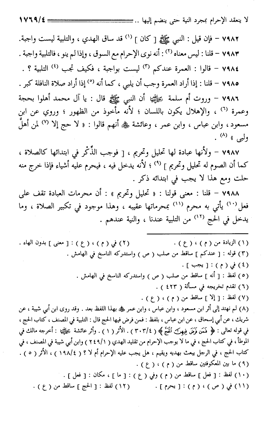 7983 - قلنا: ليس معناه: أنه نوى الإحرام مع السوق، وإذا لم ينو، فالتلبية واجبة.