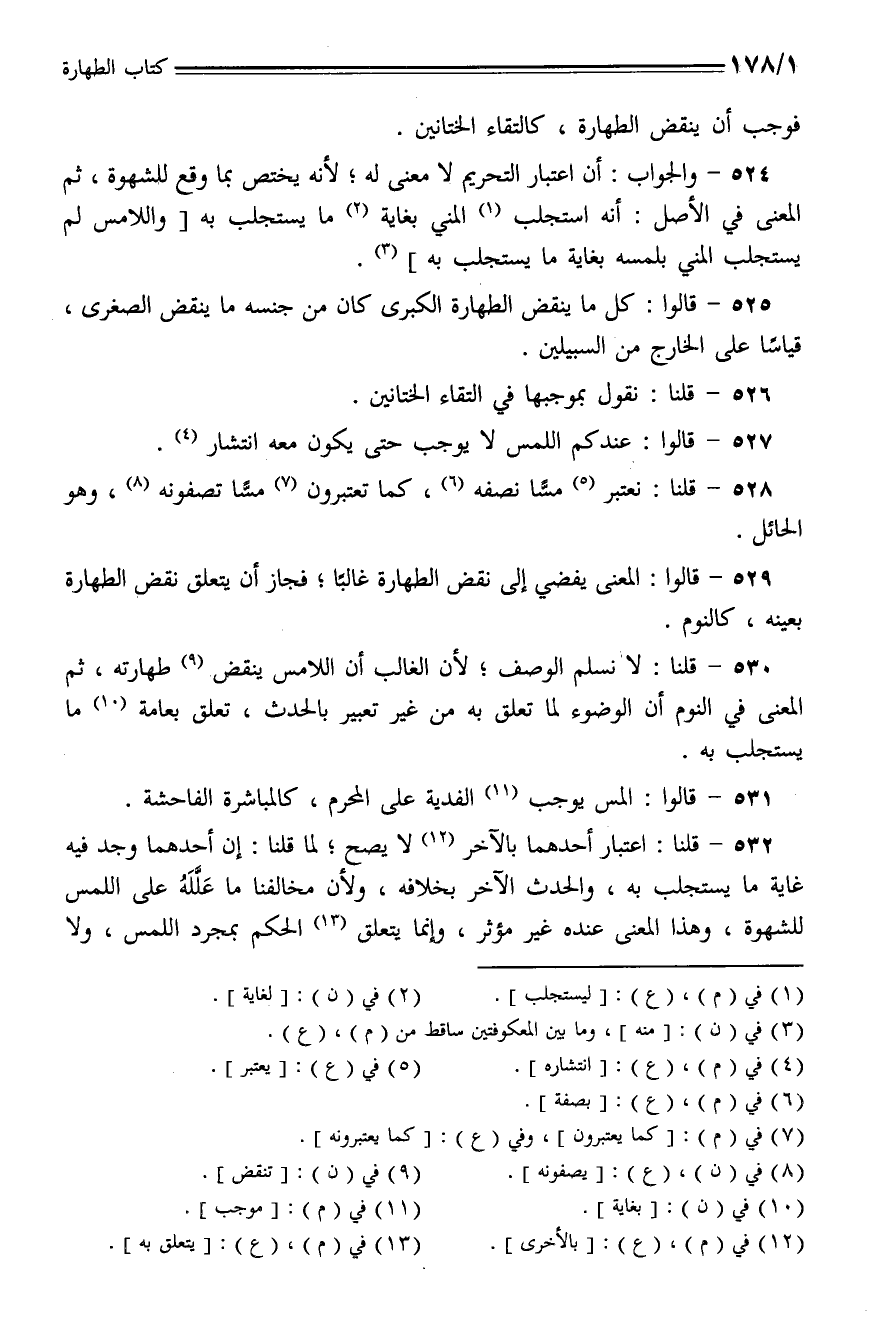525 - قالوا: كل ما ينقض الطهارة الكبرى كان من جنسه ما ينقض الصغرى، قياسًا على الخارج من السبيلين.