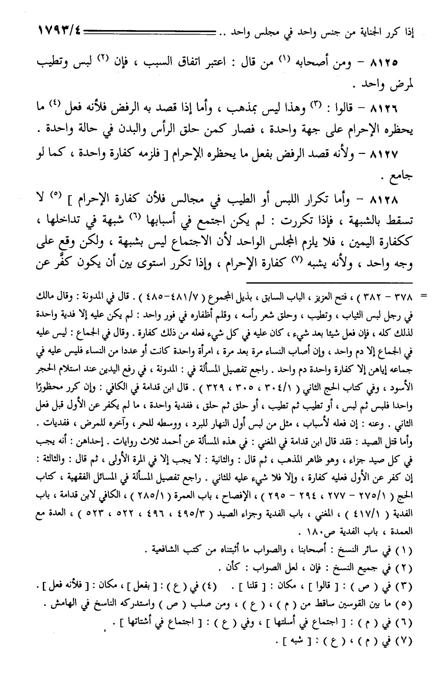 8126 - قالوا: وهذا ليس بمذهب، وأما إذا قصد به الرفض فلأنه فعل ما يحظره الإحرام على جهة واحدة، فصار كمن حلق الرأس والبدن في حالة واحدة.