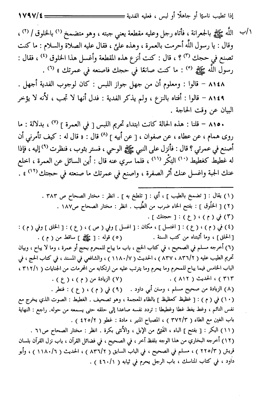 8148 - قالوا: ومعلوم أن من جهل جواز اللبس: كان لوجوب الفدية أجهل.