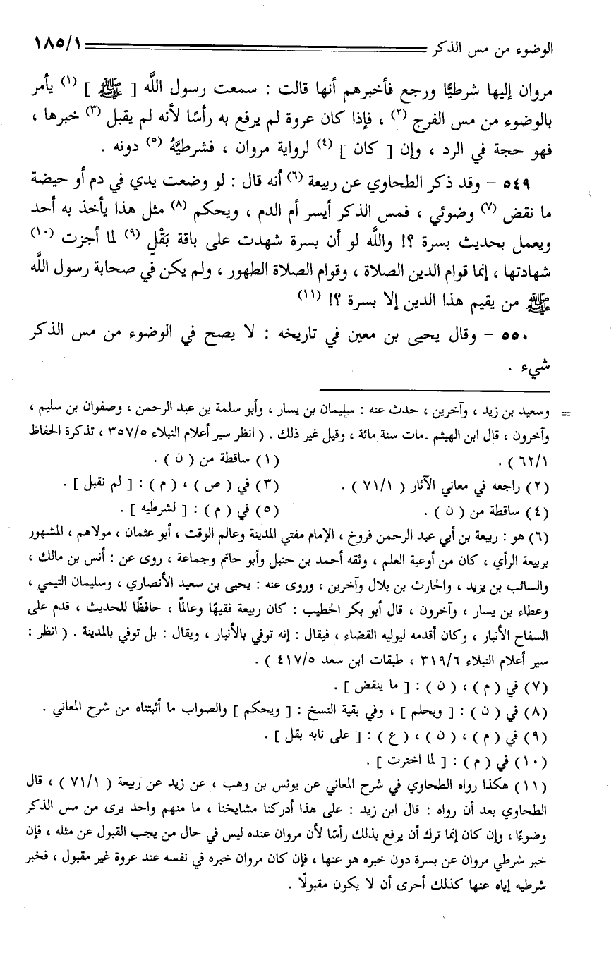 550 - وقال يحيى بن معين في تاريخه: لا يصح في الوضوء من مس الذكر شيء.