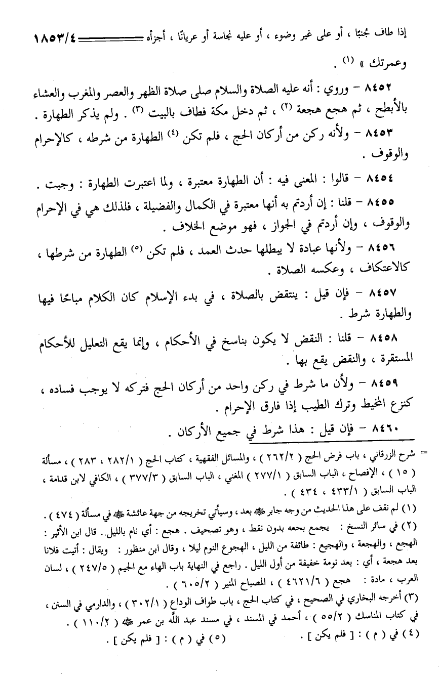 8455 - قلنا: إن أردتم به أنها معتبرة في الكمال والفضيلة، فلذلك هي في الإحرام والوقوف، وإن أردتم في الجواز، فهو موضع الخلاف.