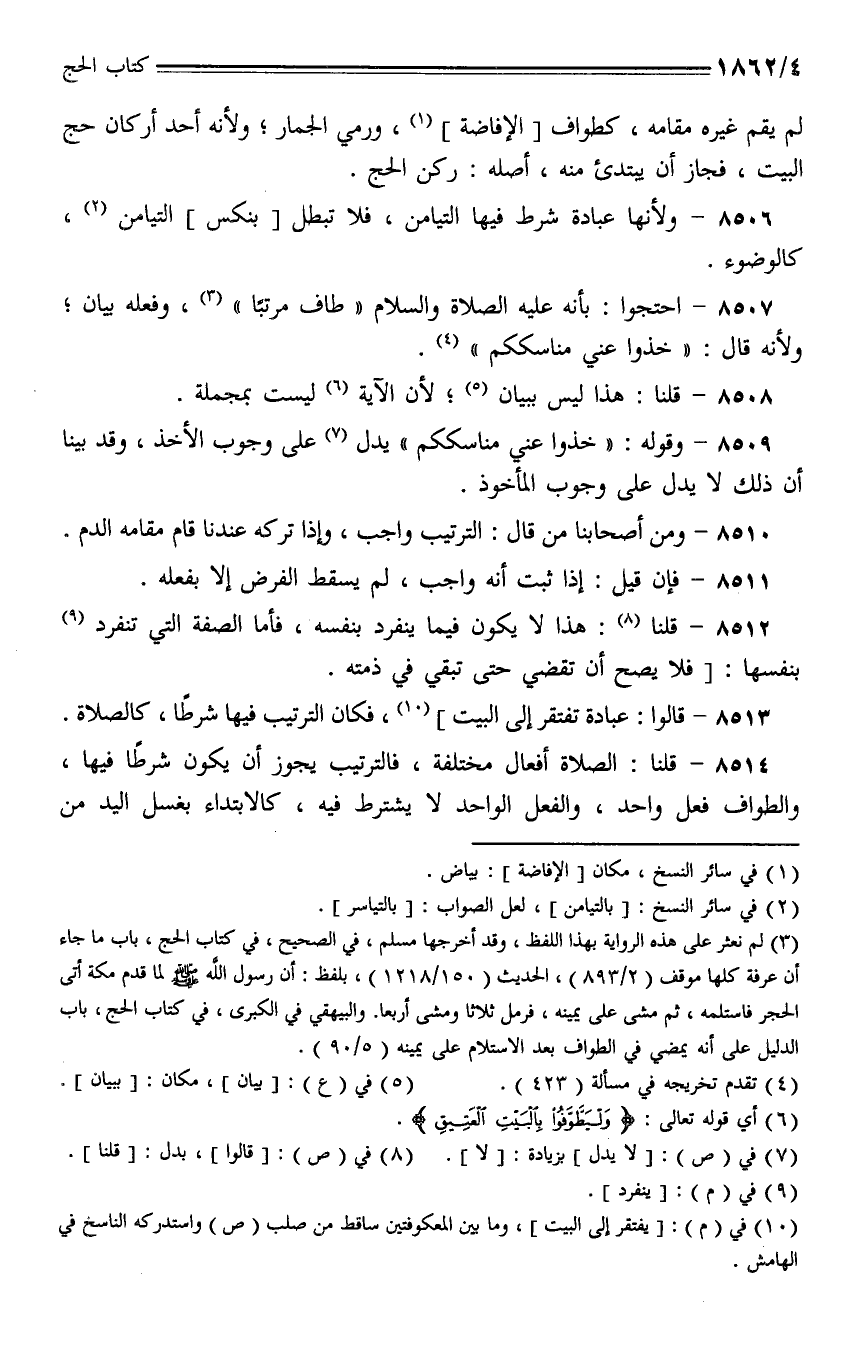 8507 - احتجوا: بأنه عليه الصلاة والسلام (طاف مرتبًا)، وفعله بيان؛ ولأنه قال: (خذوا عني مناسككم).