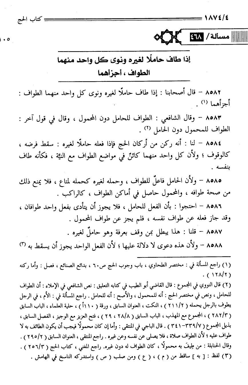 8582 - قال أصحابنا: إذا طاف حاملاً لغيره ونوى كل واحد منهما الطواف: أجزأهما.