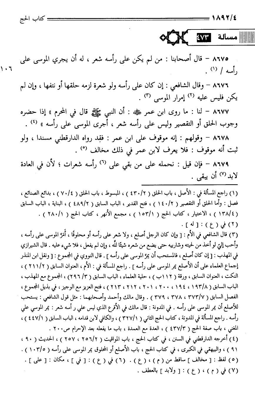 8679 - فإن قيل: نحمله على من بقي على رأسه شعرات؛ لأن في العادة لابد أن يبقى.