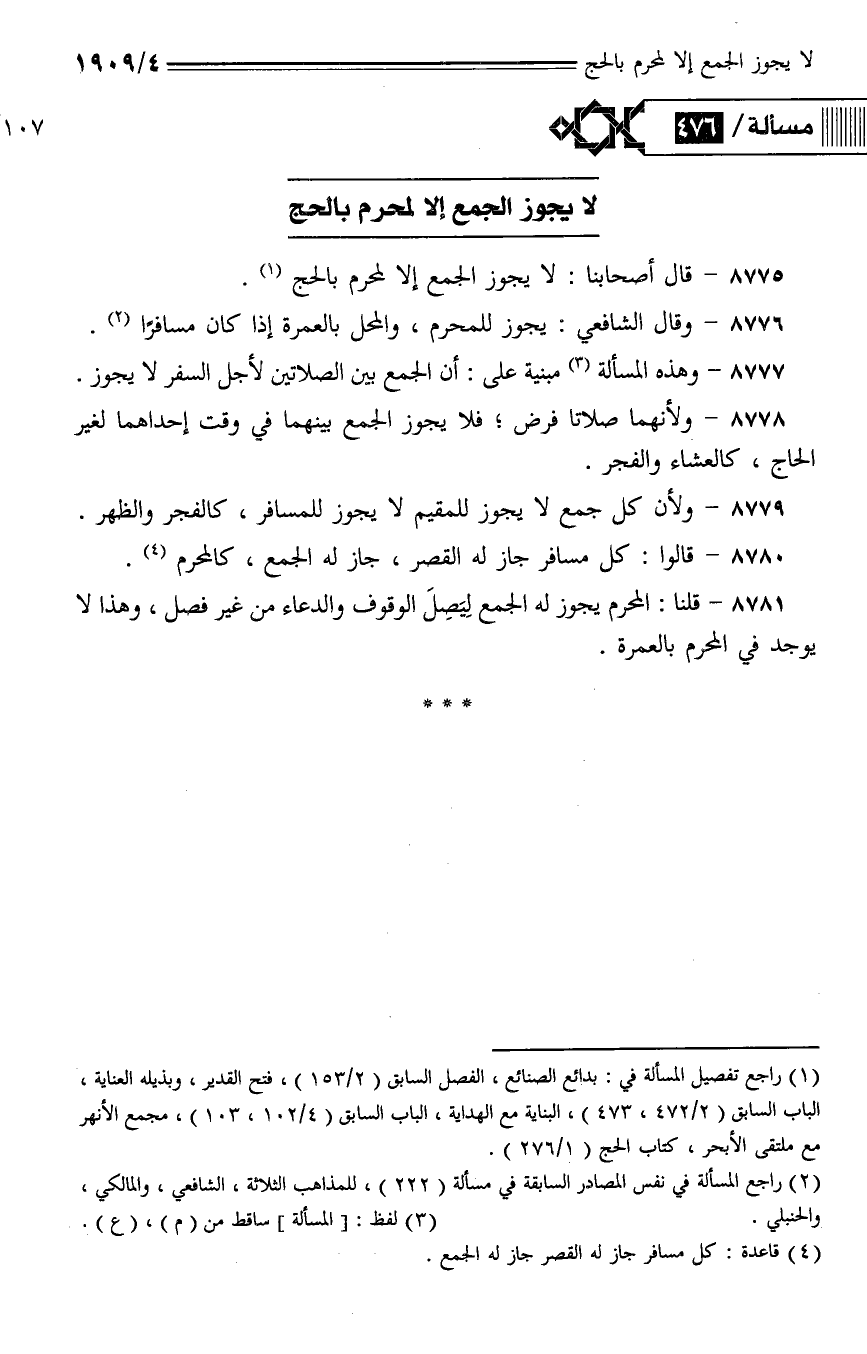 8775 - قال أصحابنا: لا يجوز الجمع إلا لمحرم بالحج.