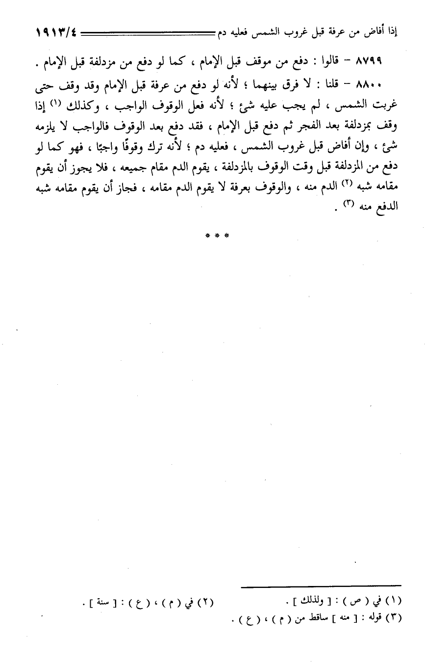 8799 - قالوا: دفع من موقف قبل الإمام، كما لو دفع من مزدلفة قبل الإمام.