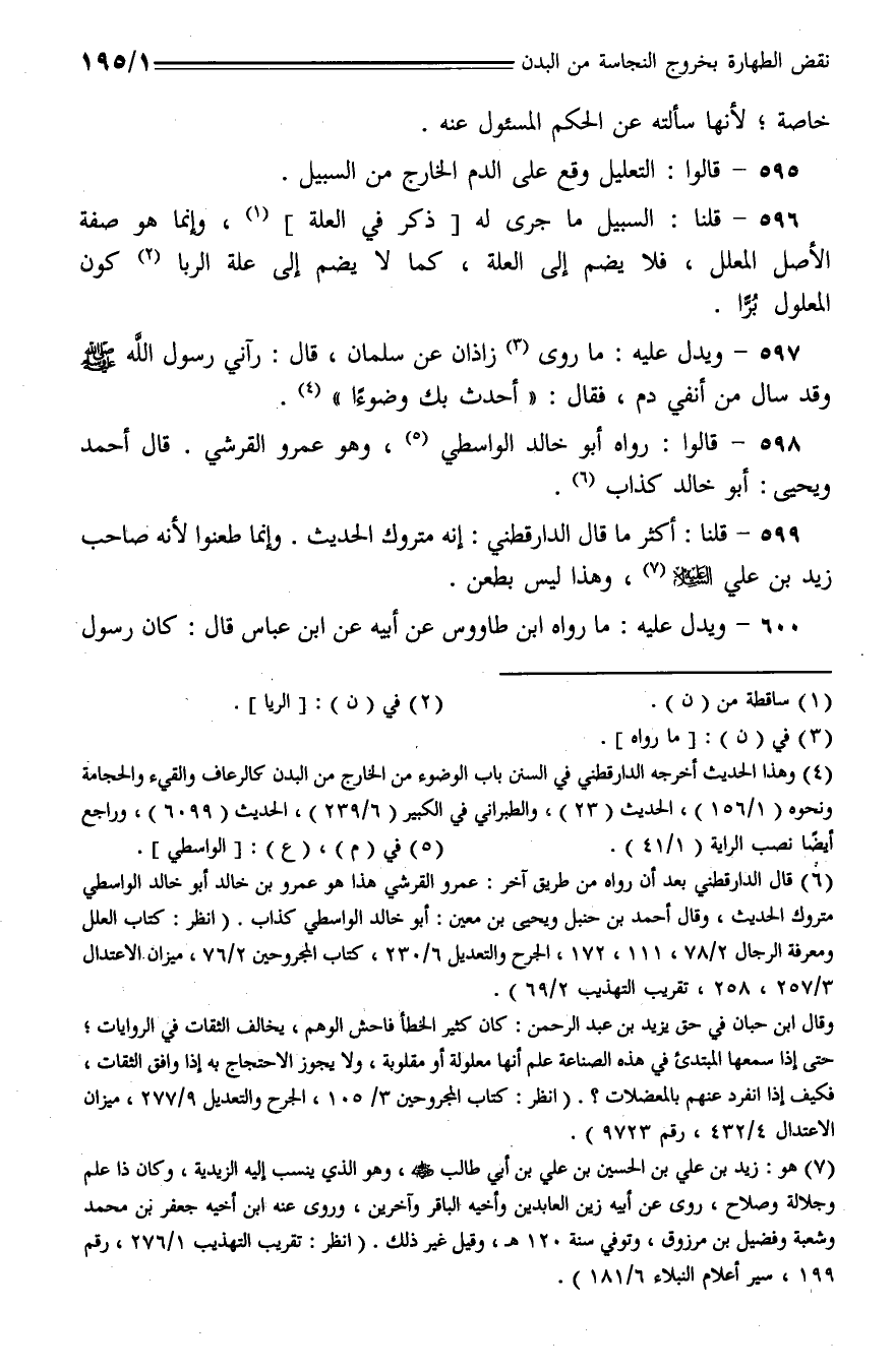 595 - قالوا: التعليل وقع على الدم الخارج من السبيل.
