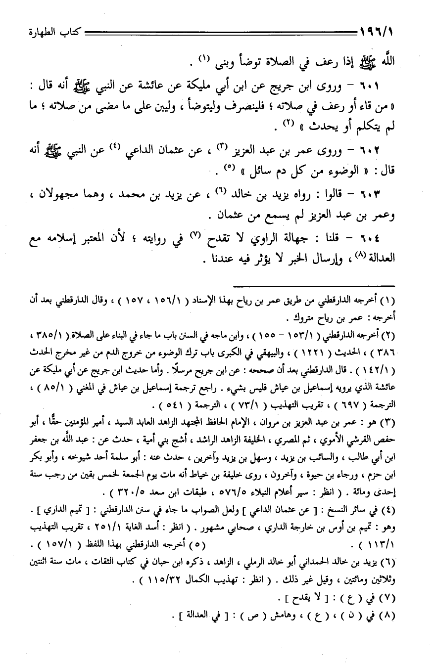 602 - وروى عمر بن عبد العزيز، عن عثمان الداعي عن النبي - صلى الله عليه وسلم - أنه قال: ((الوضوء من كل دم سائل)).