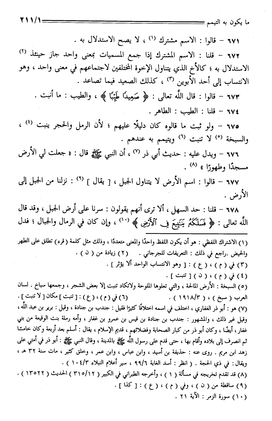 672 - قلنا: الاسم المشترك إذا جمع المسميات بمعنى واحد جاز حينئذ الاستدلال به؛ كالأخ الذي يتناول الإخوة المختلفين لاجتماعهم في معنى واحد، وهو الانتساب إلى أحد الأبوين، كذلك الصعيد فيما تصاعد.