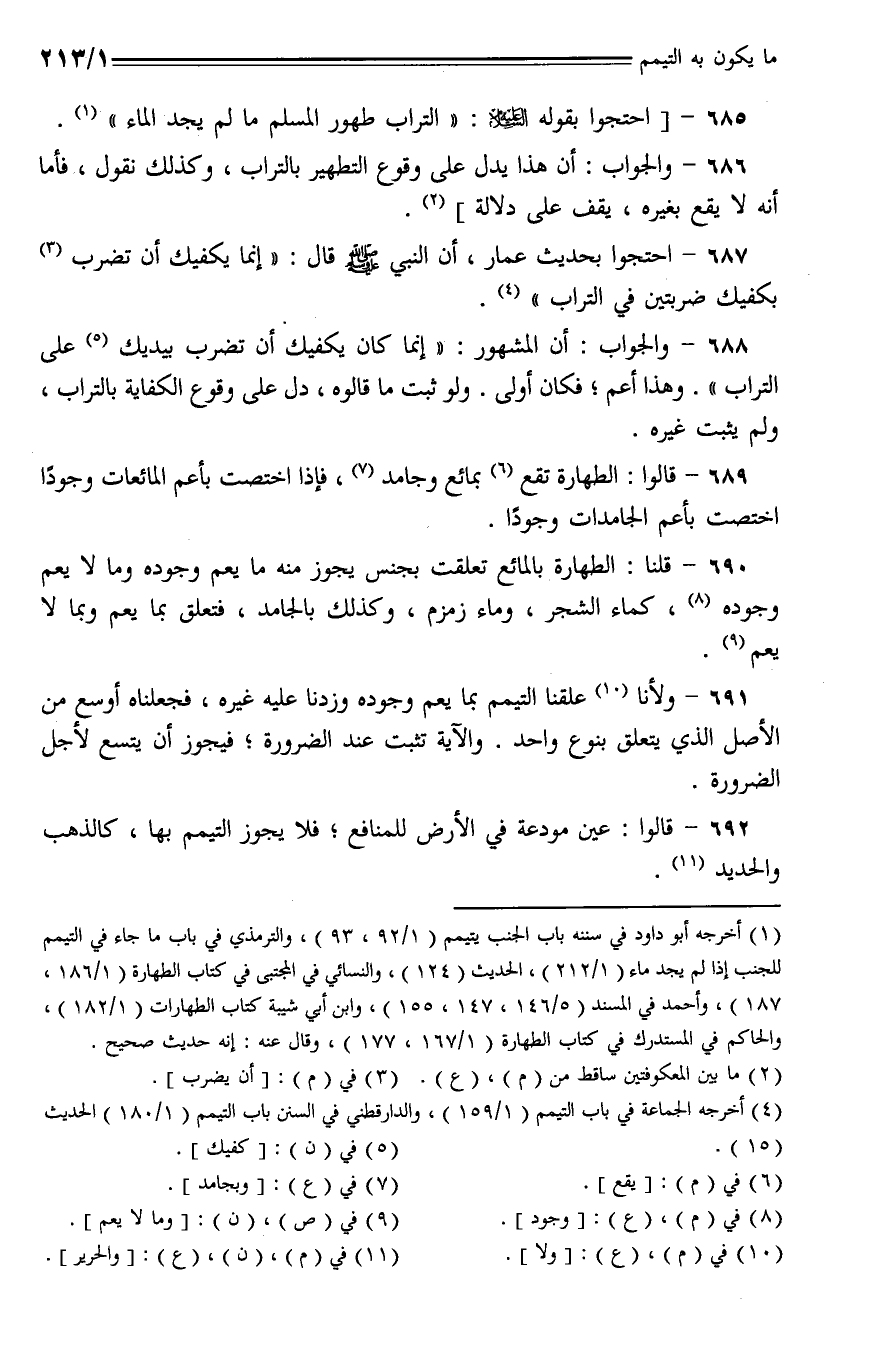 689 - قالوا: الطهارة تقع بمائع وجامد، فإذا اختصت بأعم المائعات وجودًا اختصت بأعم الجامدات وجودًا.