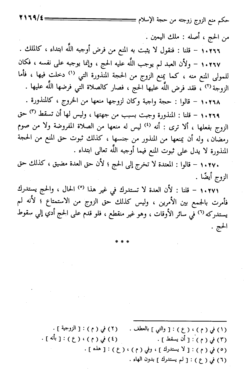 10271 - قلنا: لأن العدة لا تستدرك في غير هذا الحال، والحج يستدرك فأمرت بالجمع بين الأمرين، وليس كذلك حق الزوج من الاستمتاع؛ لأنه لم يستدركه في سائر الأوقات، وهو غير منقطع، فلو قدم على الحج أدى إلى سقوط الحج.