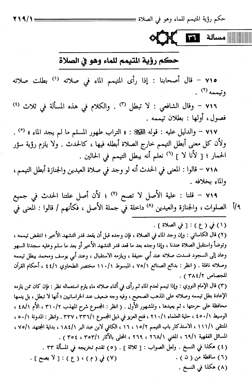 716 - وقال الشافعي: لا تبطل. والكلام في هذه المسألة في ثلاث فصول، أولها: بطلان تيممه.