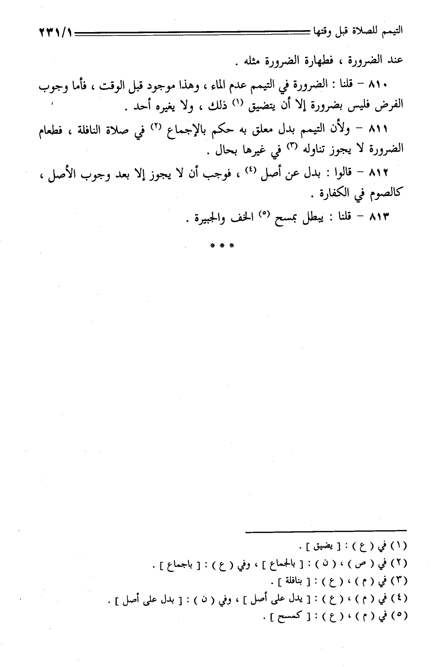 811 - ولأن التيمم بدل معلق به حكم بالإجماع في صلاة النافلة، فطعام الضرورة لا يجوز تناوله في غيرها بحال.