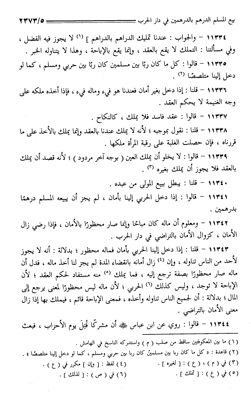 11335 - قالوا: كل ما كان ربا بين مسلمين كان ربا بين حربي ومسلم، كما لو دخل إلينا متلصصا.