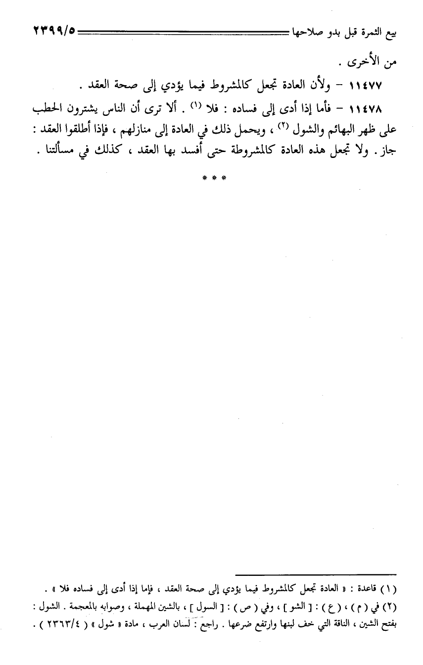 11477 - ولأن العادة تجعل كالمشروط فيما يؤدي إلى صحة العقد.