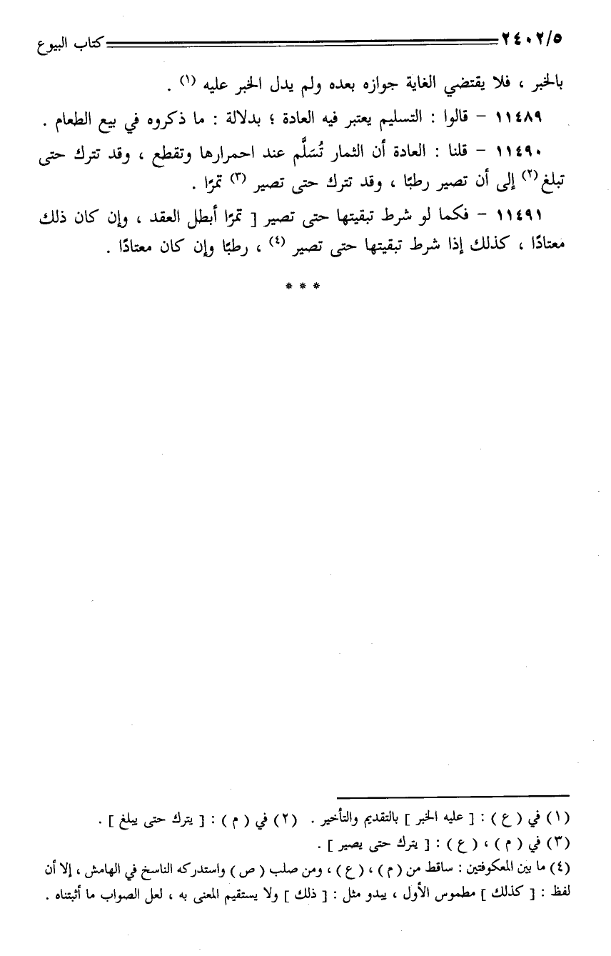 11490 - قلنا: العادة أن الثمار تسلم عند احمرارها وتقطع، وقد تترك حتى تبلغ إلى أن تصير رطبًا، وقد تترك حتى تصير تمرًا.