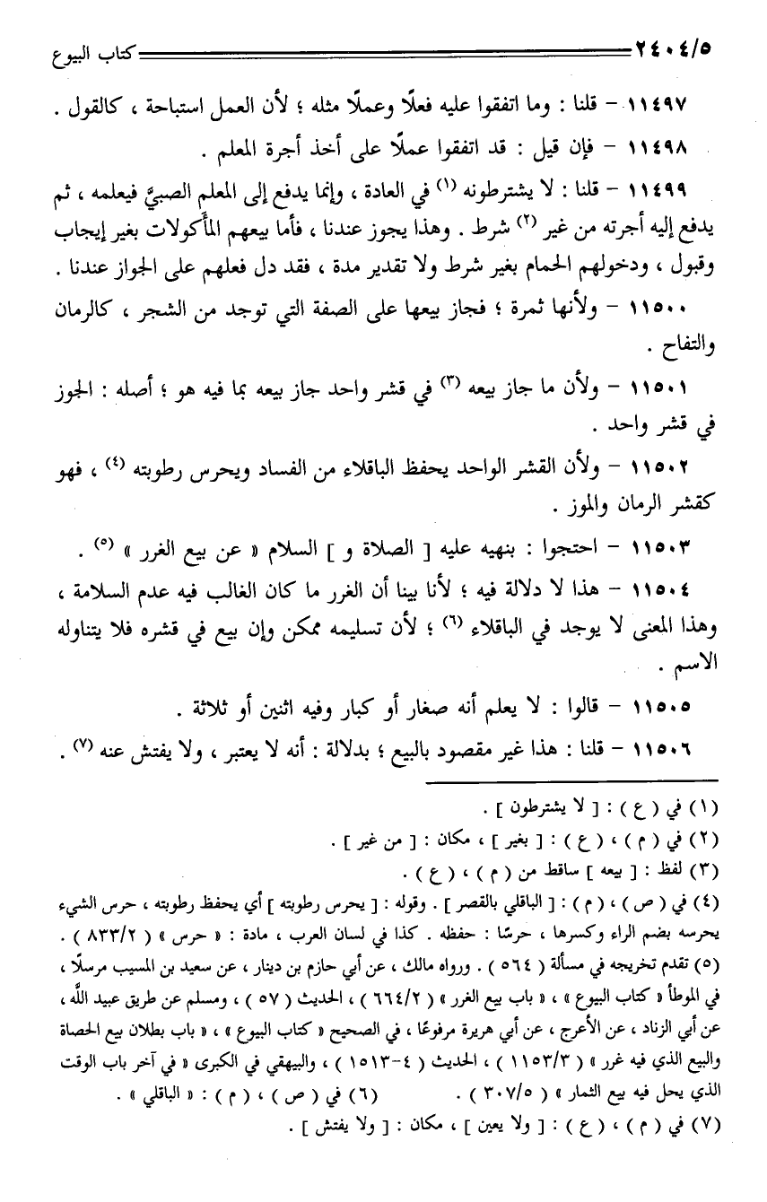 11504 - هذا لا دلالة فيه؛ لأنا بينا أن الغرر ما كان الغالب فيه عدم السلامة، وهذا المعنى لا يوجد في الباقلاء؛ لأن تسليمه ممكن وإن بيع في قشره فلا يتناوله الاسم.