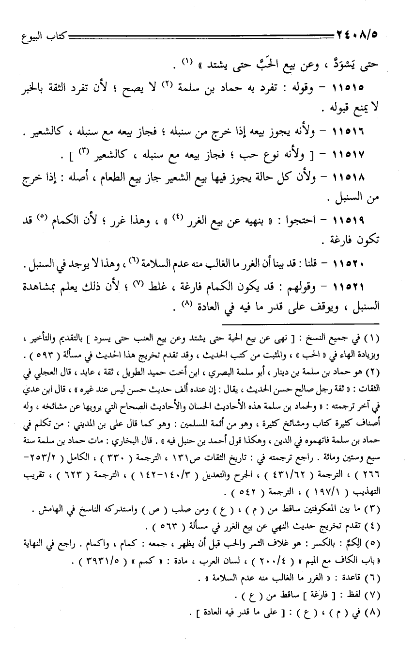 11521 - وقولهم: قد يكون الكمام فارغة، غلط؛ لأن ذلك يعلم بمشاهدة السنبل، ويوقف على قدر ما فيه في العادة.