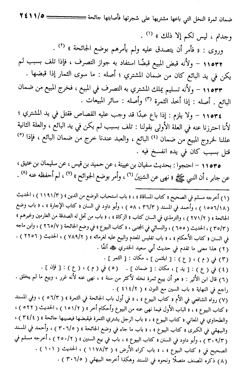 11535 - احتجوا: بحديث سفيان بن عيينة، عن حميد بن قيس، عن سيلمان بن عتيق، عن جابر، أن النبي - صلى الله عليه وسلم - (نهى عن السنين، وأمر بوضع الجوائح)، لم أحفظه عنه.