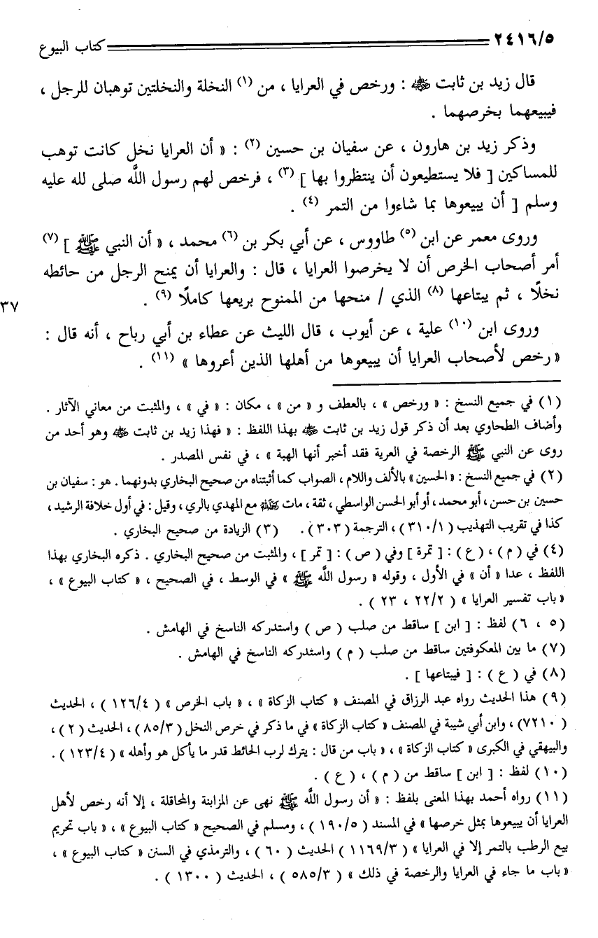 وذكر زيد بن هلرون، عن سفيان بن حسين: (أن العرايا نخل كانت توهب للمساكين [فلا يستطيعون أن ينتظروا بها]، فرخص لهم رسول الله صلى الله عليه وسلم [أن يبيعوها بما شاءوا من التمر.