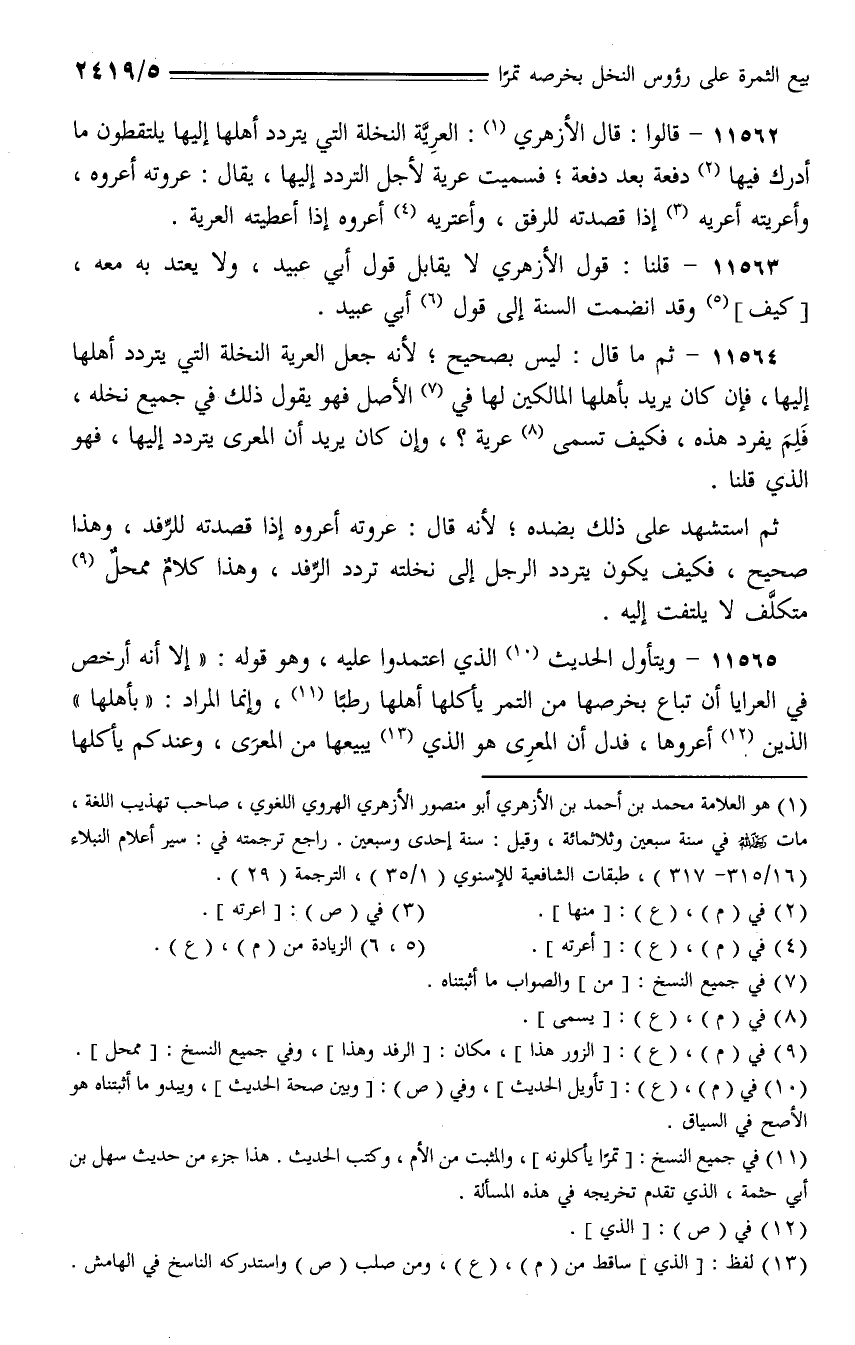11563 - قلنا: قول الأزهري لا يقابل قول أبي عبيد، ولا يعتد به معه، [كيف] وقد انضمت السنة إلى قول أبي عبيد.