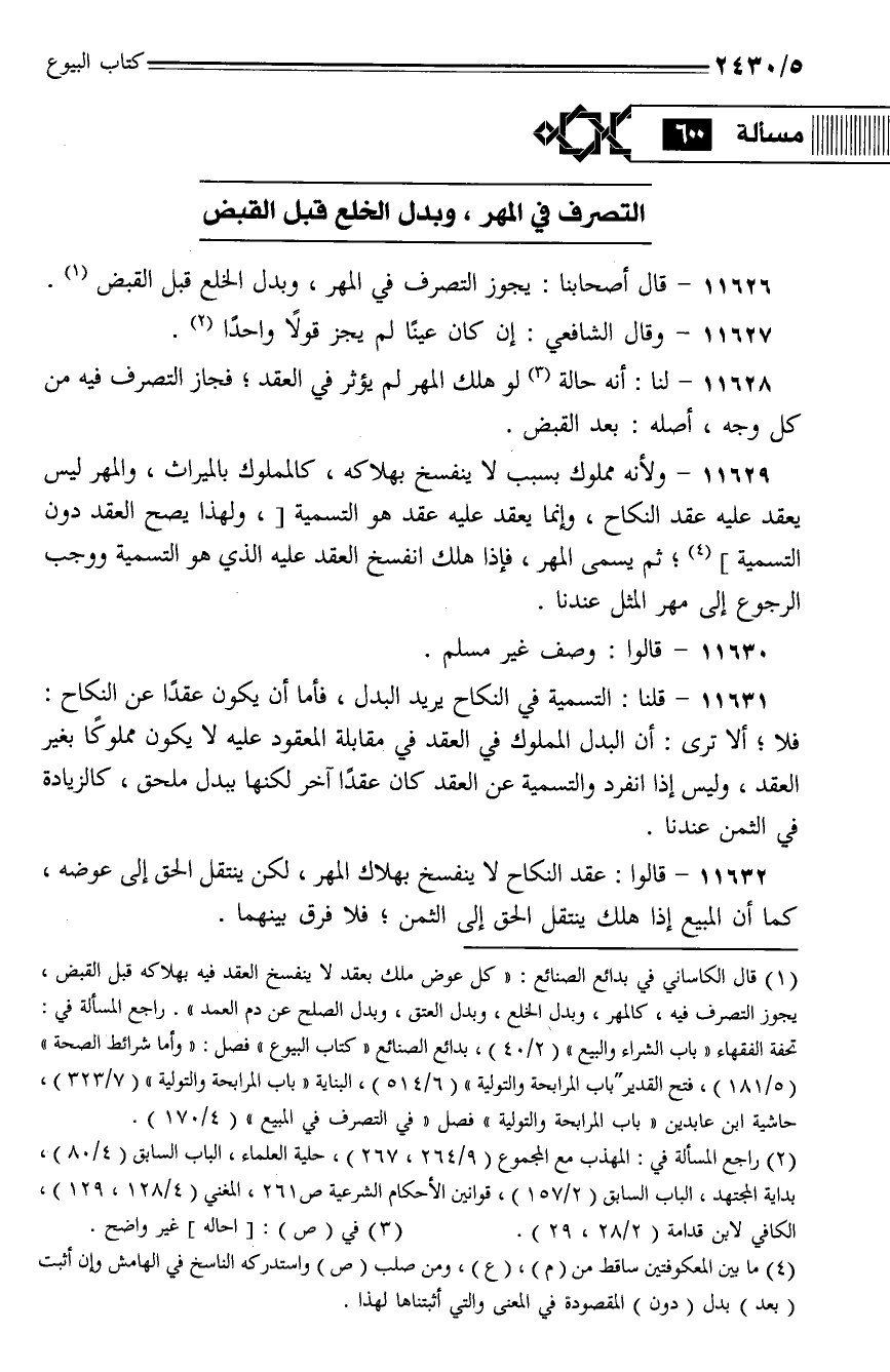 11626 - قال أصحابنا: يجوز التصرف في المهر، وبدل الخلع قبل القبض.