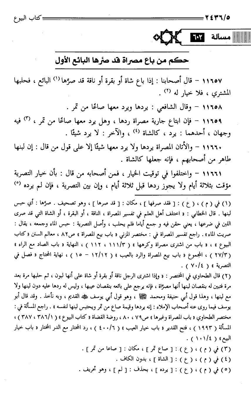 11661 - واختلفوا في توقيت الخيار، فمن أصحابه من قال: بأن خيار التصرية مؤقت بثلاثة أيام ولا يجوز ردها قبل ثلاثة أيام، وإن بين التصرية، فإن لم يرده