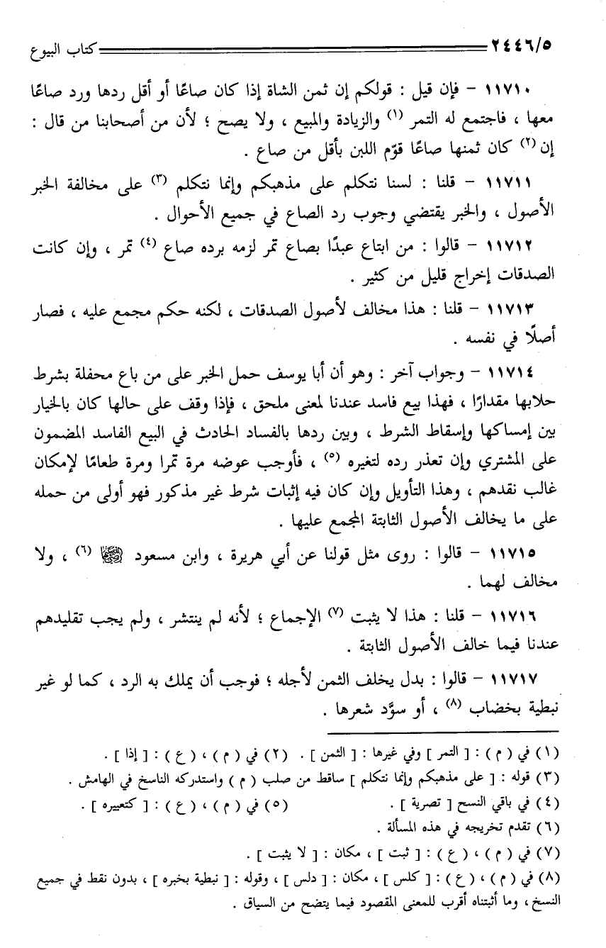 11711 - قلنا: لسنا نتكلم على مذهبكم وإنما نتكلم على مخالفة الخبر الأصول، والخبر يقتضي وجوب رد الصاع في جميع الأحوال.
